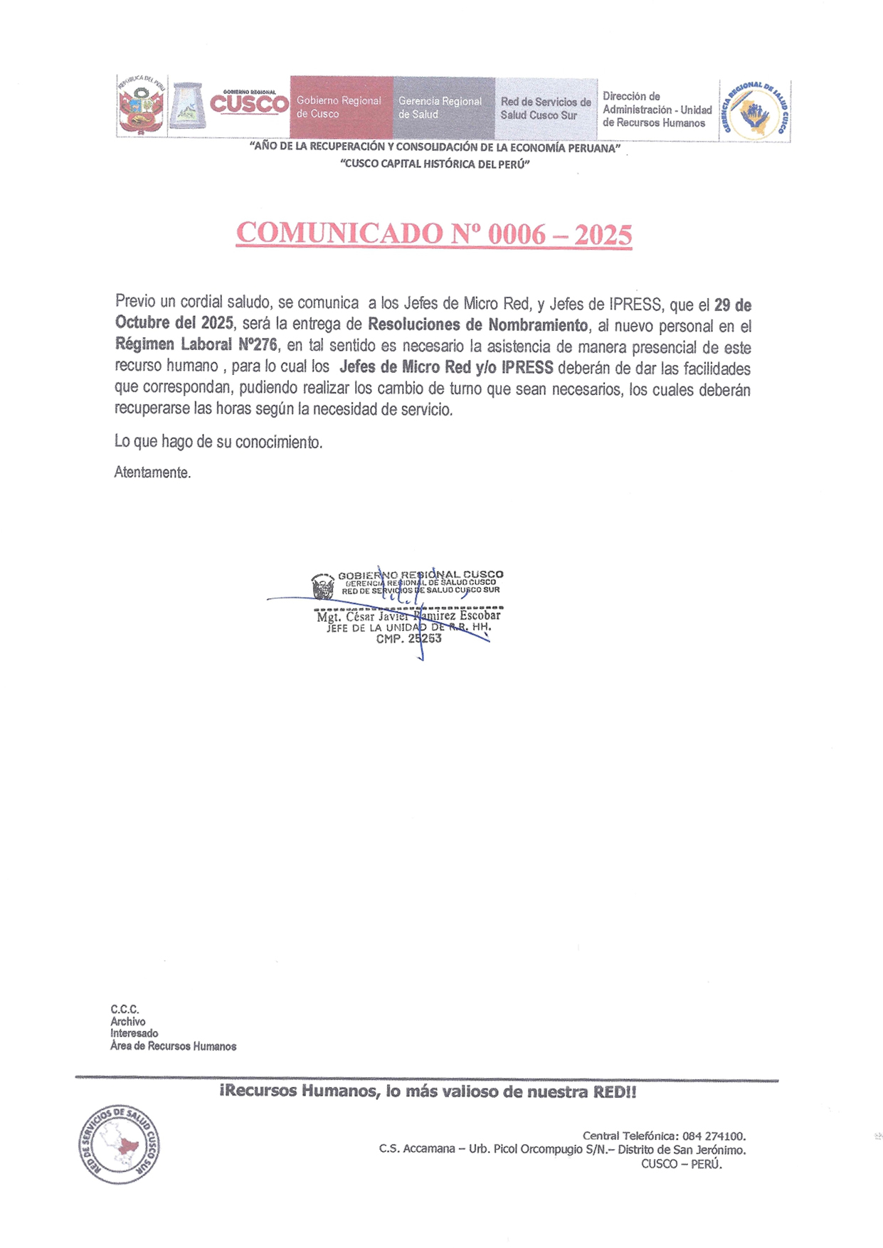 Red de Servicios de Salud Cusco Sur (RSSCS) es una entidad adscrita a Gobierno Regional de Cusco.