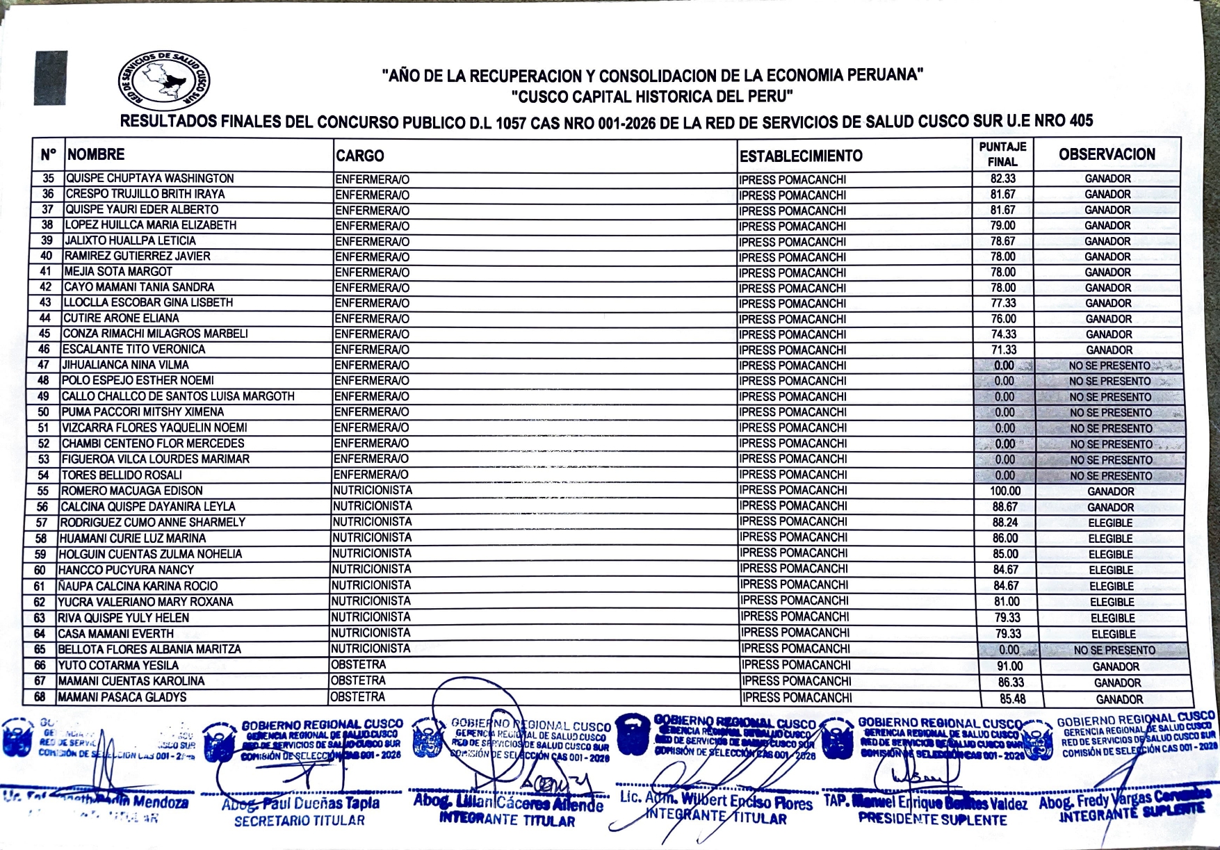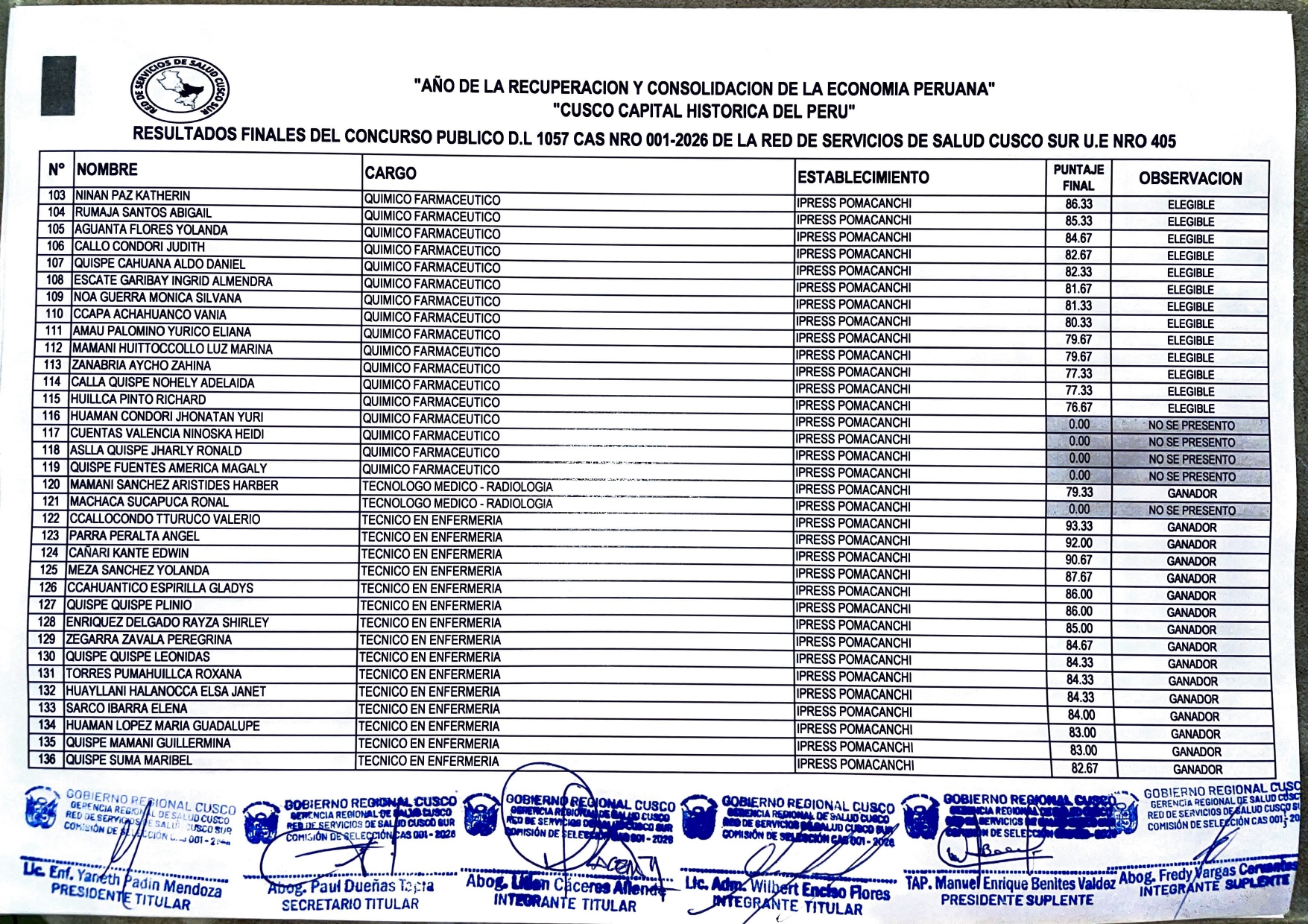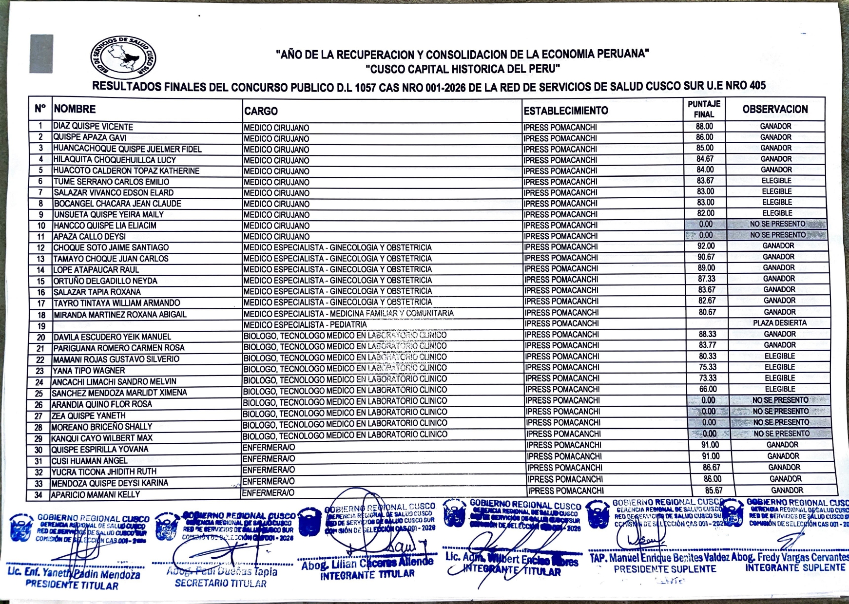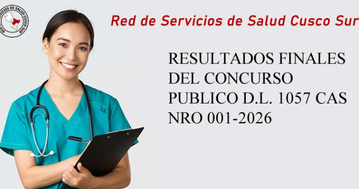 RESULTADOS FINALES DEL CONCURSO PUBLICO D.L. 1057 CAS NRO 001-2026 Publicado el abril 16, 2026abril 16, 2026 DESCARGAR RESULTADOS FINALES Publicado en CONVOCATORIAS.