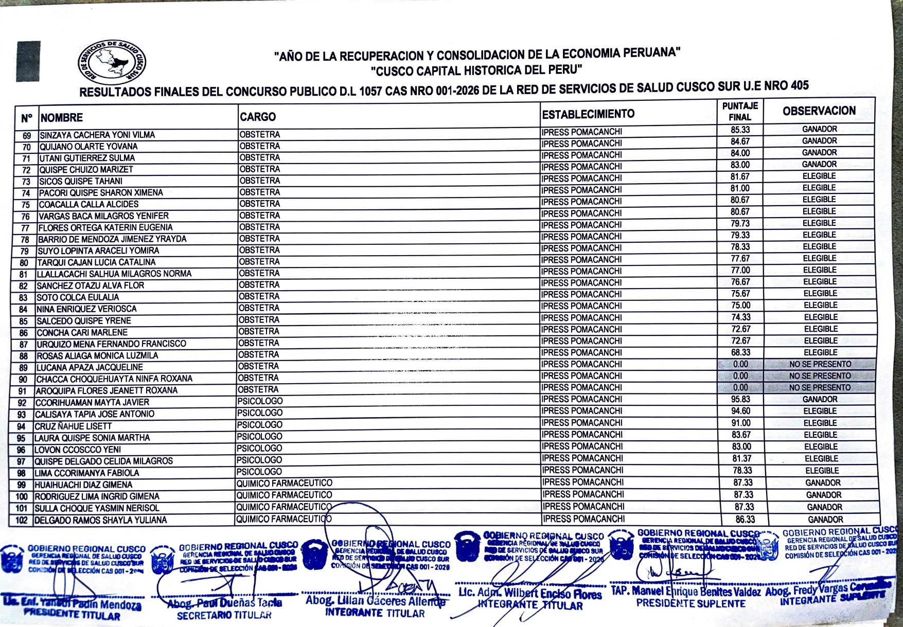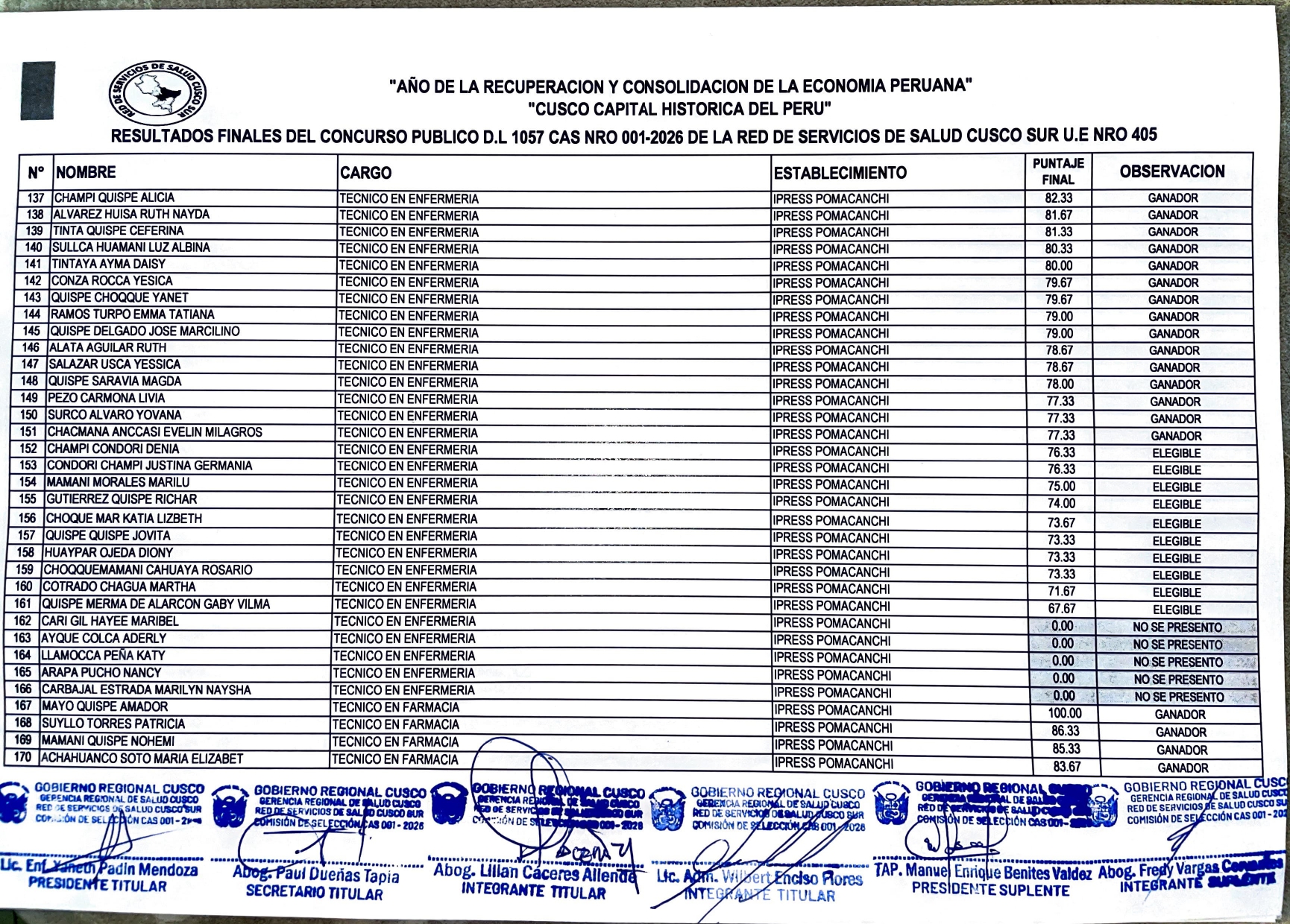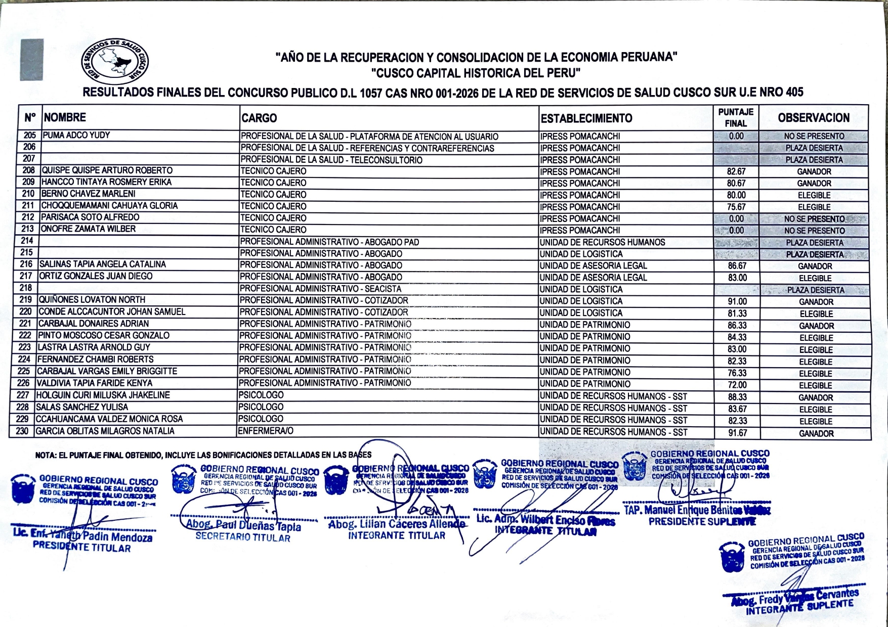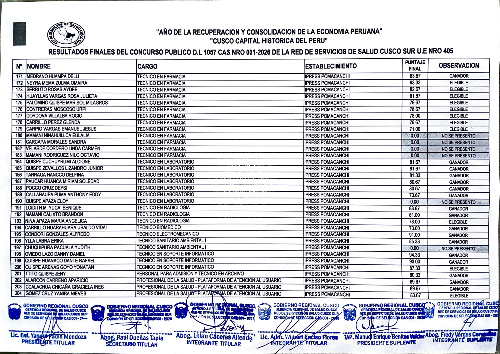 RESULTADOS FINALES DEL CONCURSO PUBLICO D.L. 1057 CAS NRO 001-2026 Publicado el abril 16, 2026abril 16, 2026 DESCARGAR RESULTADOS FINALES Publicado en CONVOCATORIAS.